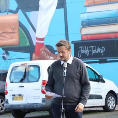 Tak til alle, der var med til at gøre indvielsen af Jakob Tolstrups vægmaleri og fejringen af Grenaa biblioteks 150 års fødselsdag til en festlig dag.
